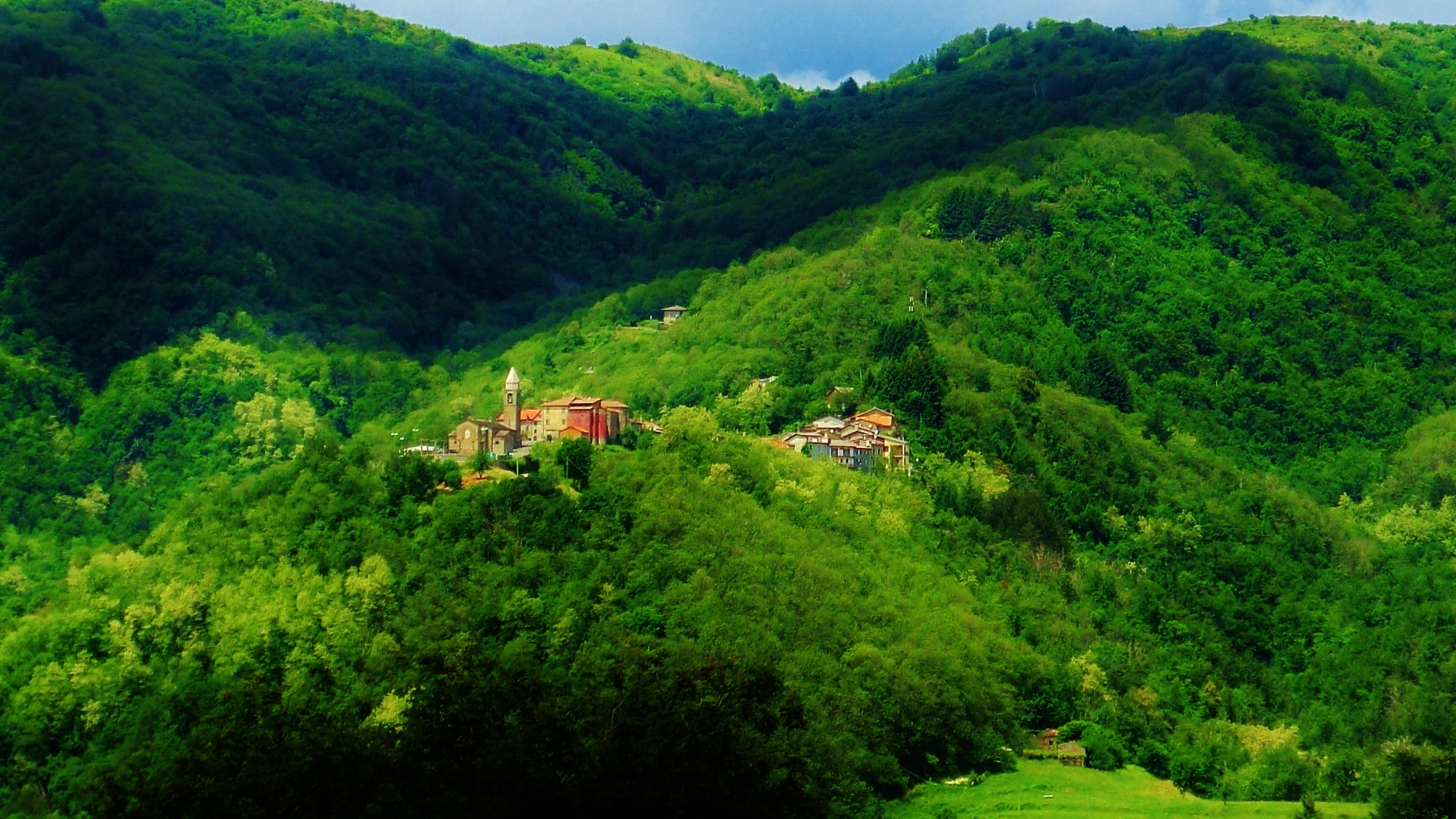Panoramic view of Montereggio, Lunigiana, on the North West Tuscan Way, Italy
