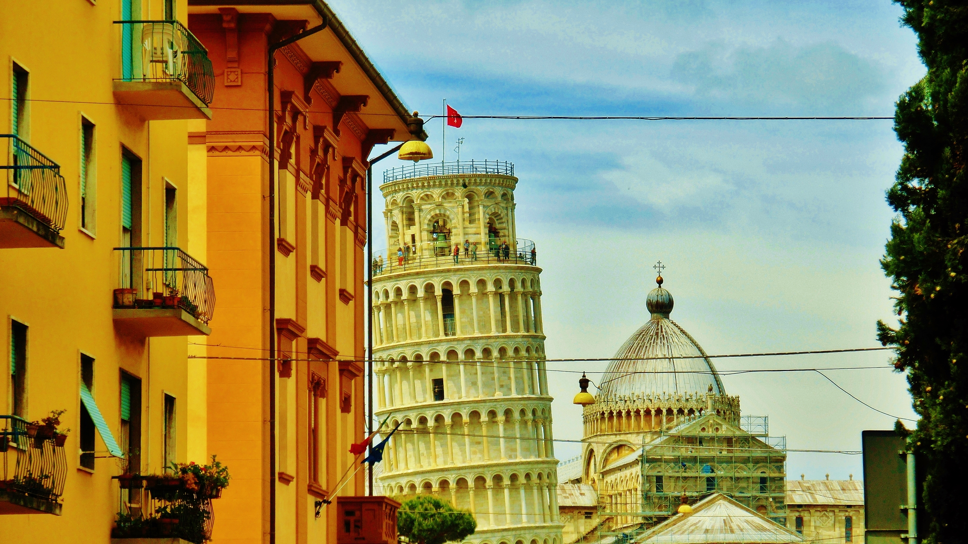 First Glimpse of the Famous Leaning Tower of Pisa, Italy, on the North West Tuscan Way by Martin Cooney