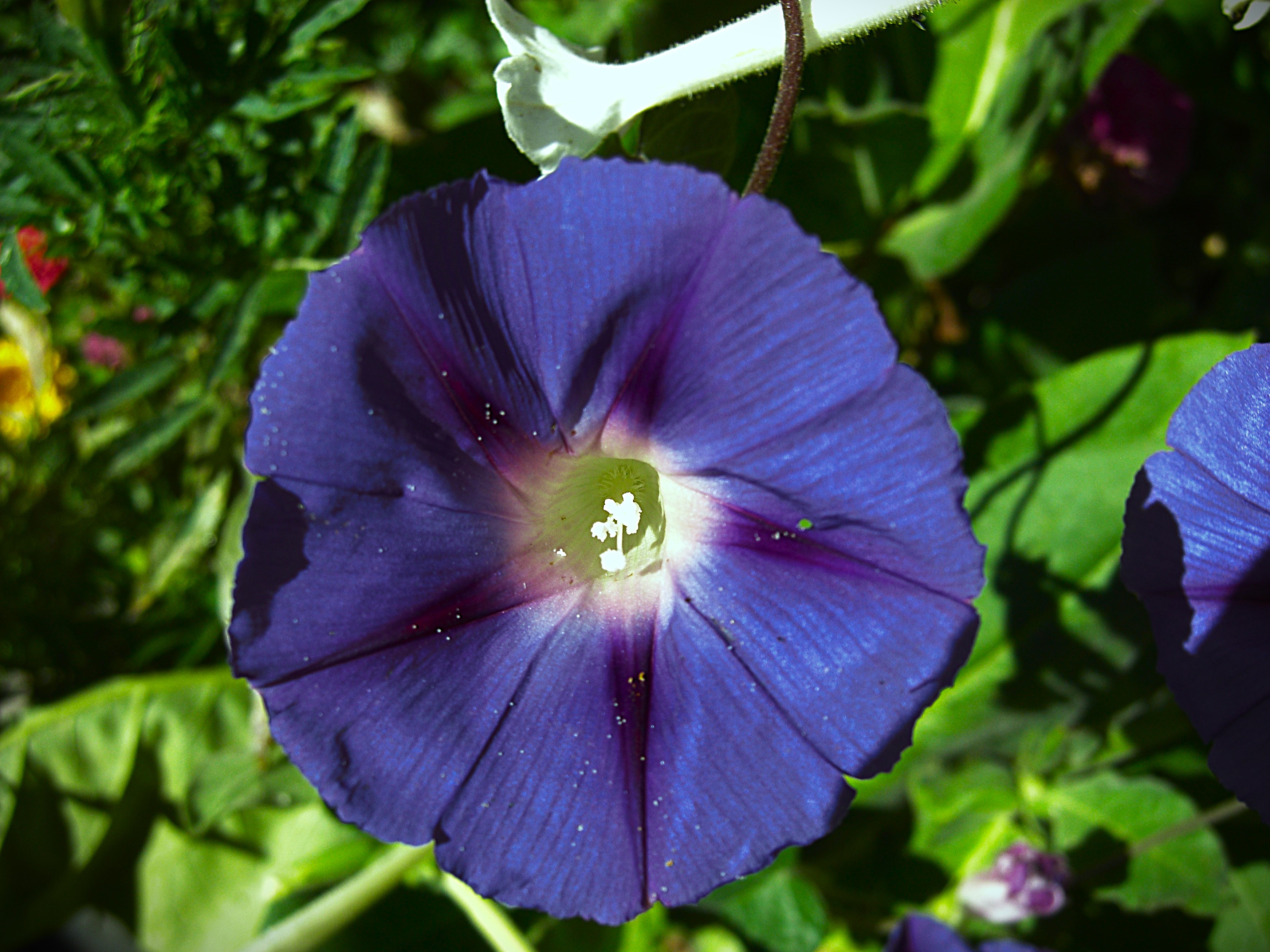 Deep Blue and Pure White Morning Glory Stares Right Back in The Walled Garden of Alta Vista, Summer 2024.